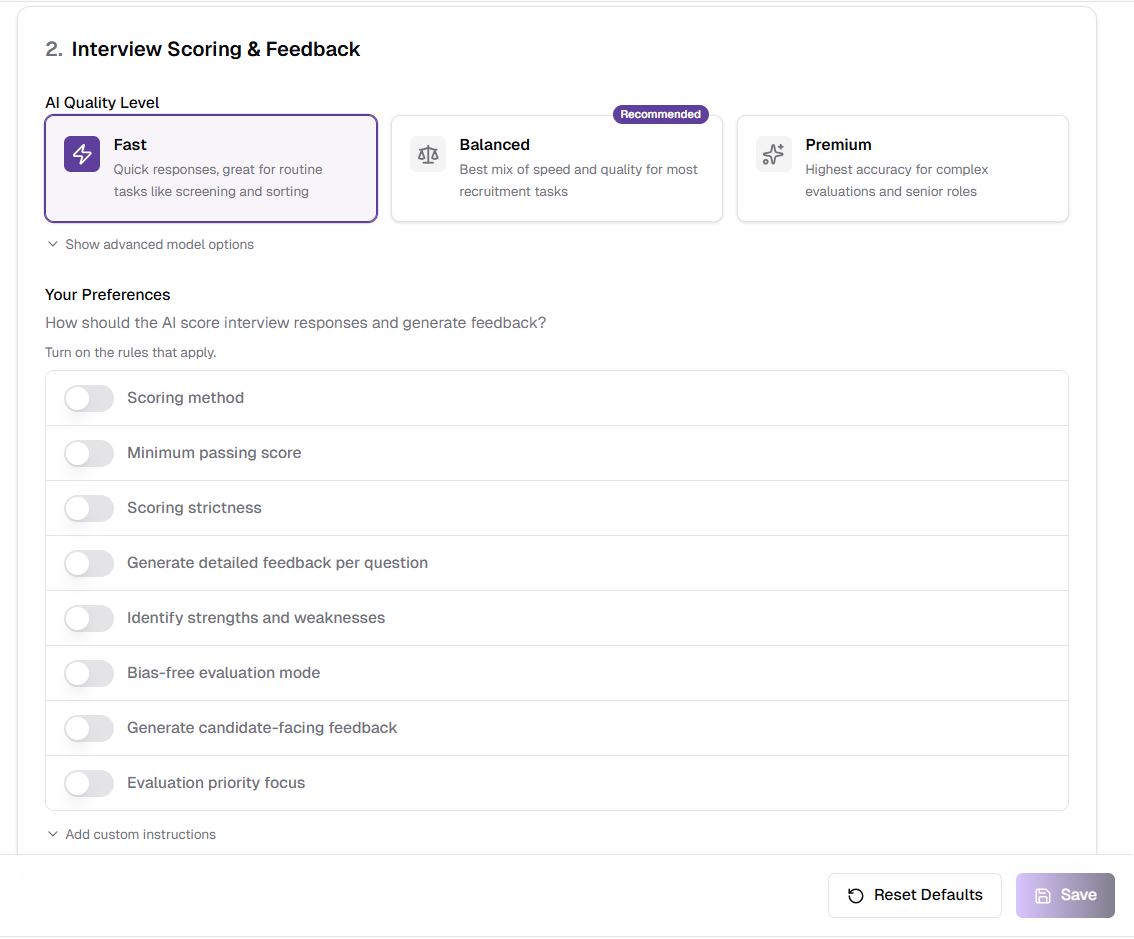 Controls how the AI evaluates and scores candidates against your job requirements.