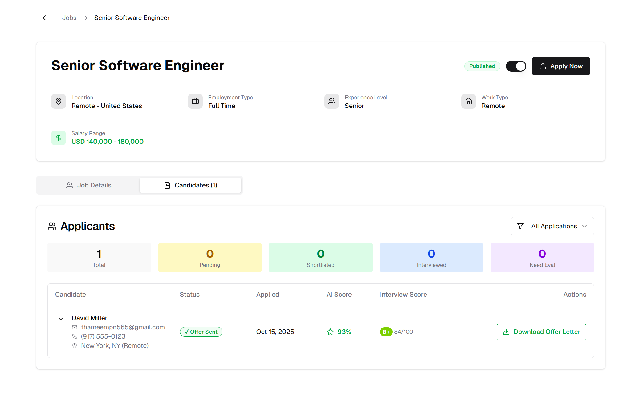 4. Notice the button change: "Send Offer" button is now "Download Offer Letter"
